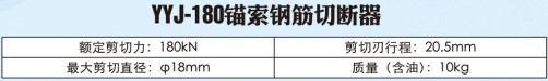 YYJ-180錨索鋼筋切斷器用于配套MSl5-180/63手動礦用錨索張拉機具、MQ15-180/63手動礦用錨索張拉機具的切斷鋼絲繩、電纜、鋼筋等。它具有結(jié)構(gòu)簡單可靠、操作方便、切斷快、重量輕等優(yōu)點,是提高工作效率的有力助手。