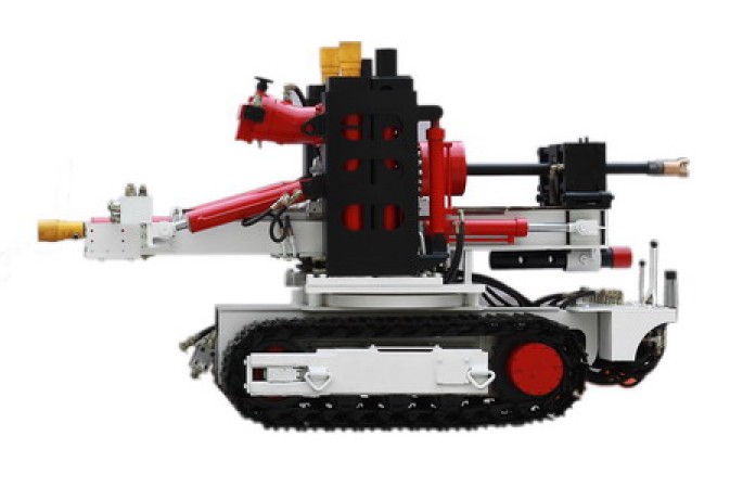 CMS1-4200/55型煤礦用深孔鉆車是新一代履帶行走的探水、探瓦斯、探斷層、放頂、注水等的鉆孔設(shè)備,可實現(xiàn)180°水平回轉(zhuǎn),垂直升降770mm, +45°~ -90°俯仰角的全方位鉆孔作業(yè),主要用于掘進工作面有防突措施要求的在軟巖或煤層中實施密集形鉆孔,也適用于其他場合。該設(shè)備具有結(jié)構(gòu)緊湊、操作靈活、機動性好、全斷面作業(yè)、安全性能好、一機多用等特點。除完成探水、探瓦斯工作外,還可鉆進復(fù)雜地層。它配套普通擴孔鉆頭等鉆具可進行回轉(zhuǎn)鉆進。