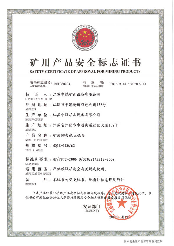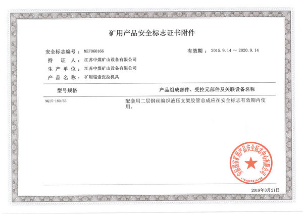 MQ15(18)-180/63礦用錨索張拉機具利用壓縮空氣作為氣動齒輪馬達的動力源帶動油泵總成工作輸出高達63MPa液壓油供給張拉千斤頂。適用于安全要求所必須的場合,如具有爆炸性瓦斯的煤礦井下作業(yè)?傮w結(jié)構(gòu)緊湊、體積小、重量輕、運轉(zhuǎn)平穩(wěn)、壓力波動小等特點,是煤礦井下進行錨索支護的設(shè)備,使用它可顯著提高煤礦錨索支護的效率、質(zhì)量和作業(yè)安全性。也可用于其他行業(yè)做壓力油供給設(shè)備。