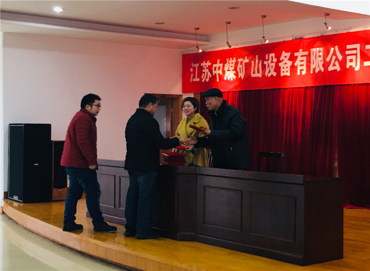 2019年2月14日上午9點,江蘇中煤礦山設備有限公司隆重召開了2018年度總結表彰大會。會上總裁黃文娟宣讀了2018年度表彰決定和先進員工名單,并頒發(fā)了榮譽證書及獎金。號召公司全體員工要以科學發(fā)展觀統(tǒng)領全局,以先進模范為榜樣,弘揚奉獻精神。解放思想、與時俱進、開拓創(chuàng)新、奮勇爭先、扎實工作、再創(chuàng)輝煌。